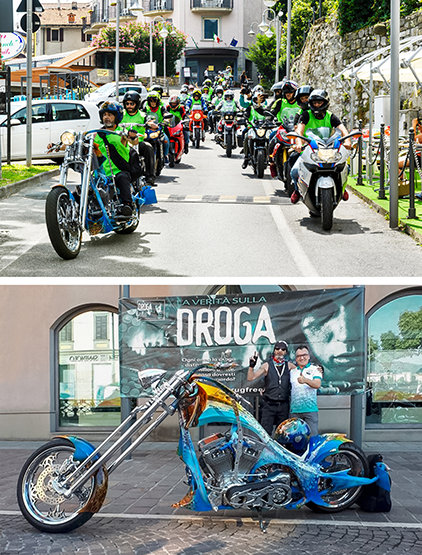 I 74 motociclisti che si sono riuniti per la prima volta a Sarnico, indossavano pettorine verdazzurro per promuovere il messaggio della libertà dalla droga e hanno fatto il giro del pittoresco Lago d’Iseo, visitando ogni cittadina patrocinante. In ogni cittadina sono stati accolti da una tenda e stand di Mondo Libero dalla Droga, dove i residenti locali hanno ricevuto gli opuscoli di Mondo Libero dalla Droga, e tutti sono stati invitati a firmare l’impegno a vivere liberi dalla droga.